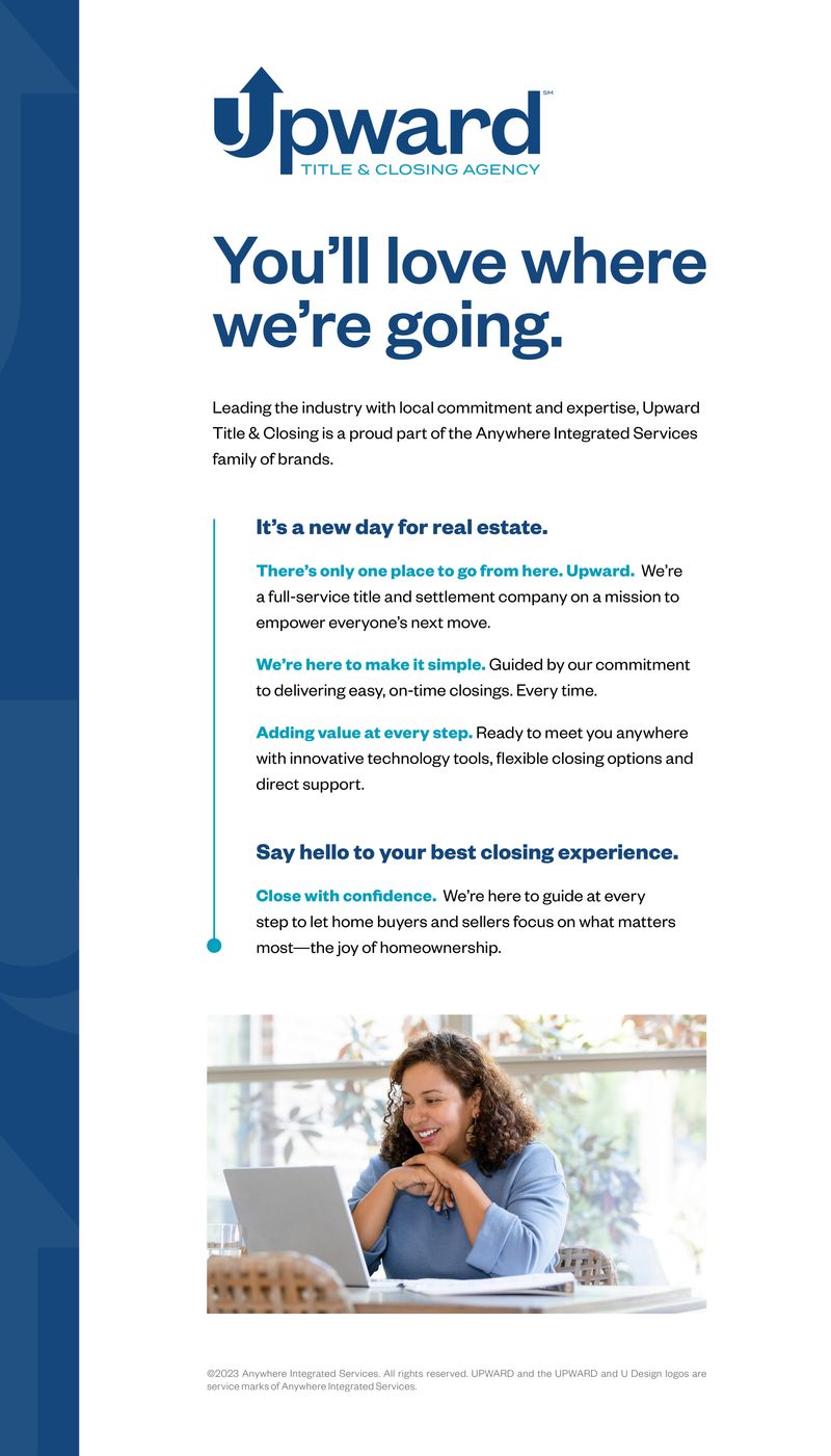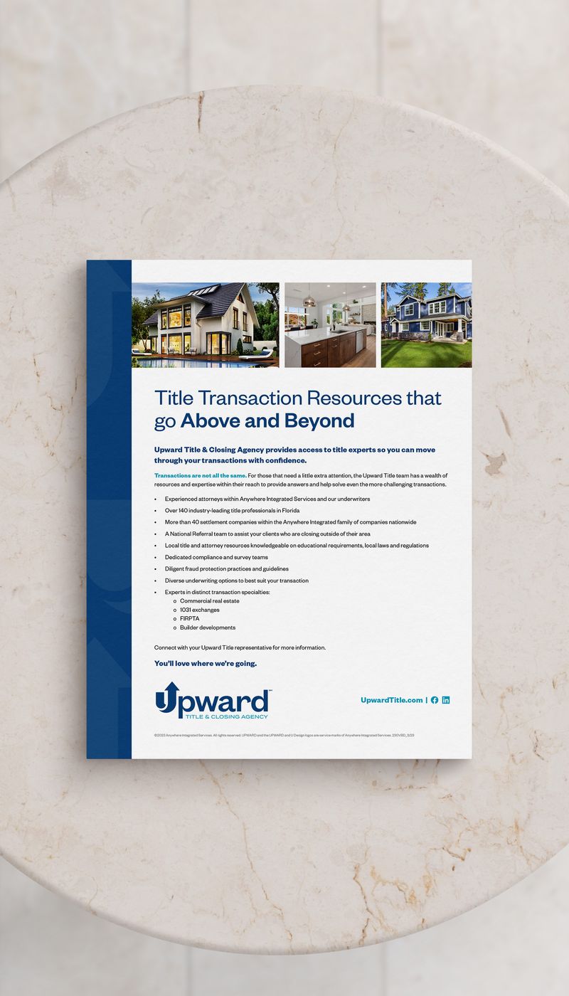 This winning collaboration between The Studio and Anywhere Integrated Services resulted in the successful launch of Upward Title & Closing. While our talented team is used to designing marketing campaigns for established brands, helping create a whole new brand from the ground up provided a unique opportunity to flex our strategic and creative muscles.